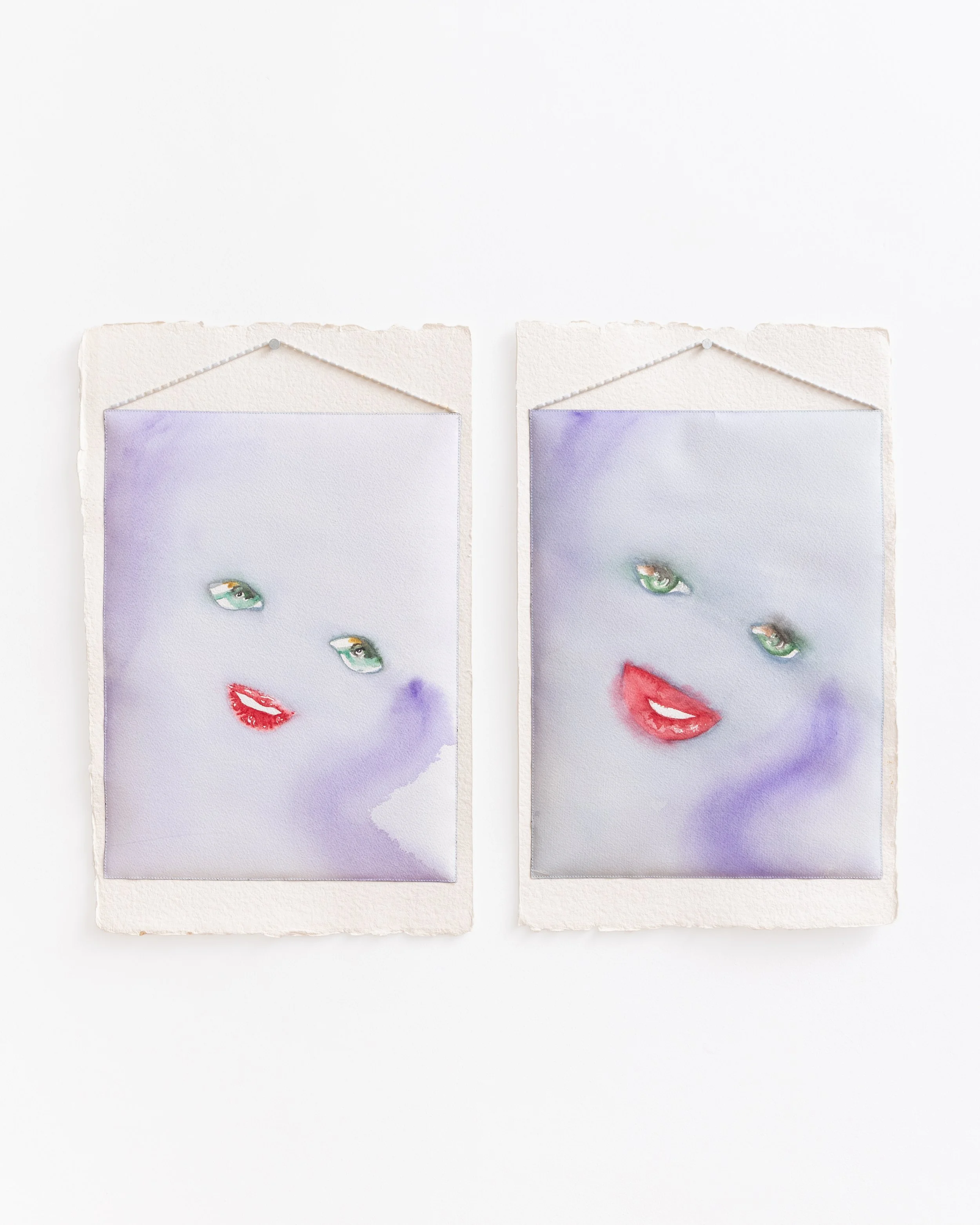 Watercolor, thread, string, cotton